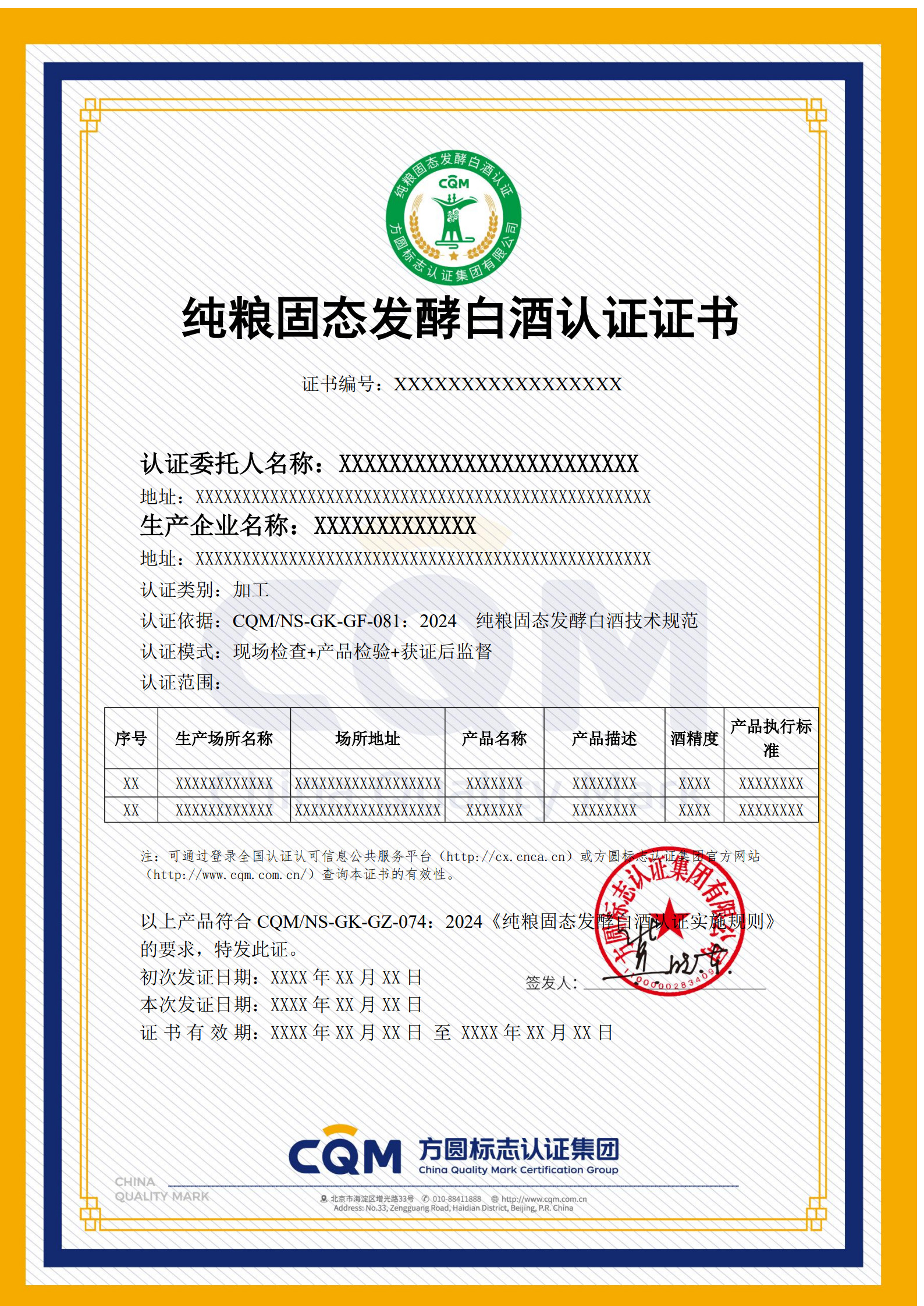 CQM/NS-GK-GZ-074:2024 纯粮固态发酵白酒认证实施规则