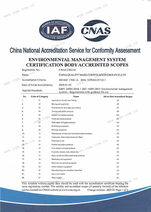 环境管理体系认证机构认可证书