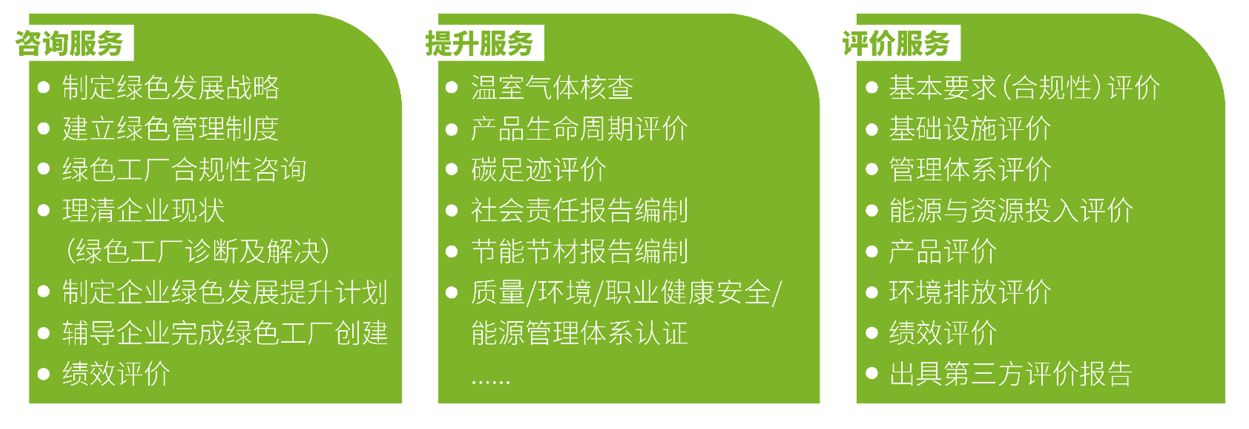 CQM可为企业创建绿色工厂提供一站式服务,具体服务内容如下:
