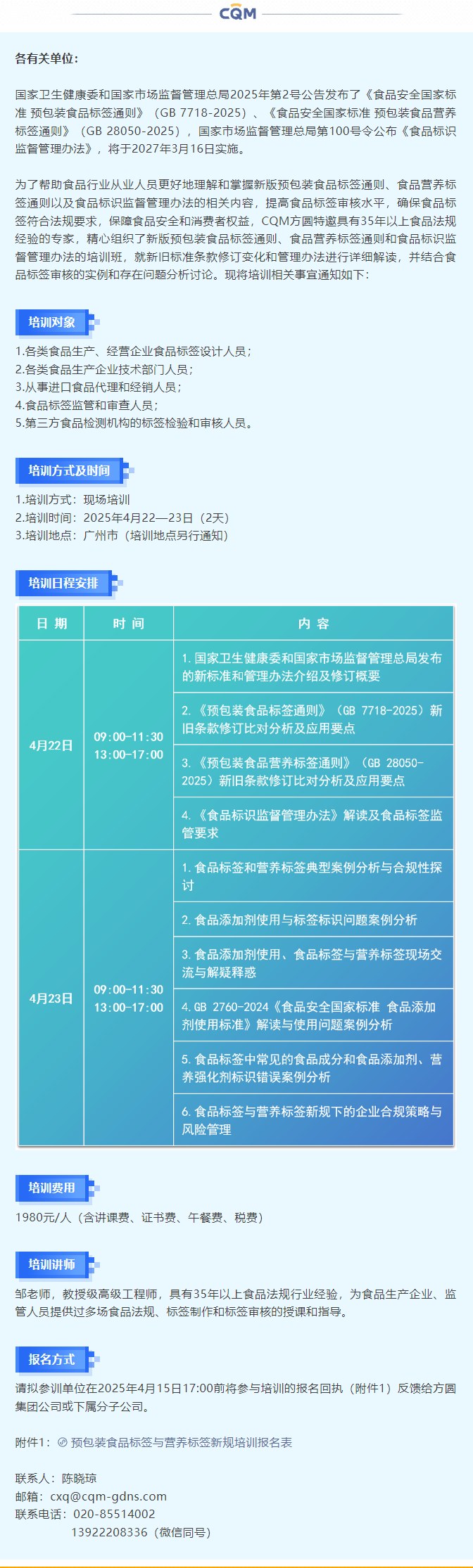 完美体育·(中国)官方网站-365WM SPORTS举办《预包装食品标签与营养标签新规深度解读及标识监管要点培训》的通知