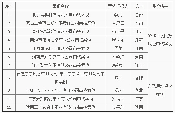 方圆集团六份案例入选2015年度中国认证认可协会良好认证审核案例