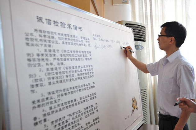 启动仪式上,省质监局通报了今年浙江省6月9日世界认可日主题系列活动的安排和要求。为强化社会责任,提倡诚信检验,现场还组织检验机构开展了《诚信检验承诺》签订活动。