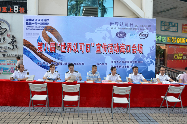时间:2015年06月12日6月9日上午,按国家认证认可监督管理委员会的有关要求,海南省质量技术监督局联合海口市质量技术监督局共同开展了以“深化认证认可合作服务一带一路建设”为主题的世界认可日宣传活动,方圆海南公司作为协办方参与了此次活动。
