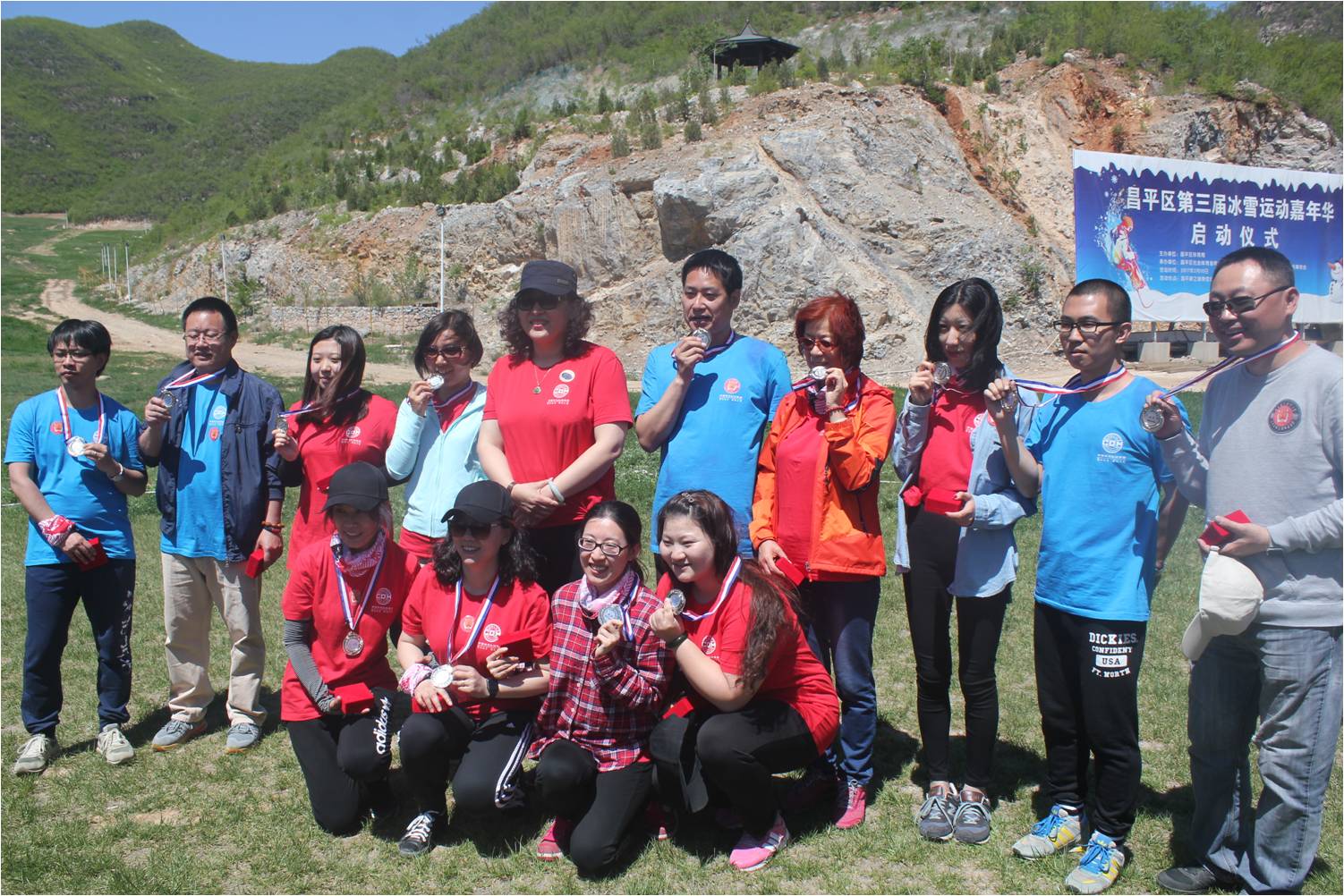 抵达黄花城水长城培训场所后,大家在培训教练的带领下被分成九个小组,经过各小组的一番头脑风暴,九个个性鲜明的团队名称、响亮的团队口号、嘹亮的队歌以及富有特色的队旗逐一精彩亮相,“小西湖场地趣味定向寻宝—湖底的秘密”拓展培训活动的序幕也正式拉开。各队手持“通关宝典”,比拼体力脑力,共同配合,拯救了“被诅咒的水怪”,攻克了“行走的板栗王”,挑战了“语言魔王”……活动过程中所有团队成员积极参与,迎难而上,队员之间相互支持,相互鼓励,最终,所有团队均圆满通关,完成了最终任务——方圆梦想拼图。