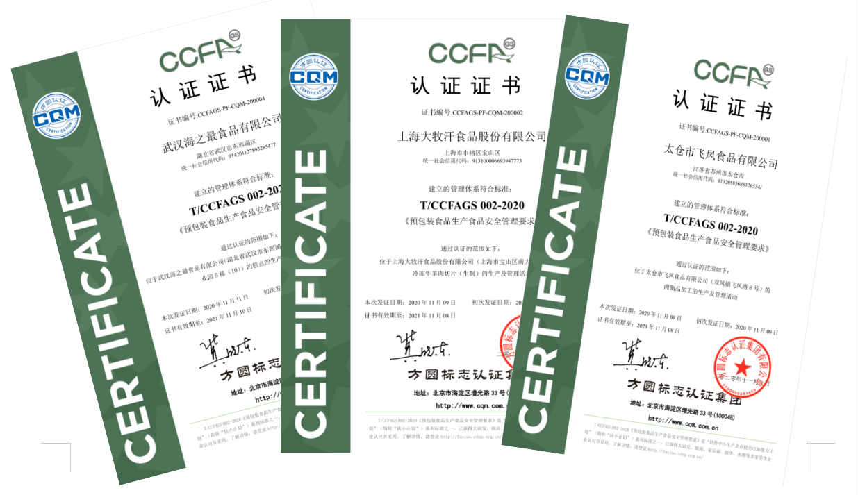 除了预包装标准(《CCFAGS-预包装食品生产食品安全管理要求》)已实现培训和验厂、认证工作;还有各类初级农产品标准(《CCFAGS-初级农产品食品安全管理要求(种植类)》、《CCFAGS-初级农产品食品安全管理要求(水产类)》、《CCFAGS-初级农产品食品安全管理要求(畜禽类)》)也在紧锣密鼓地进行标准校准中,实现初级农产品的扶小计划工作指日可待!