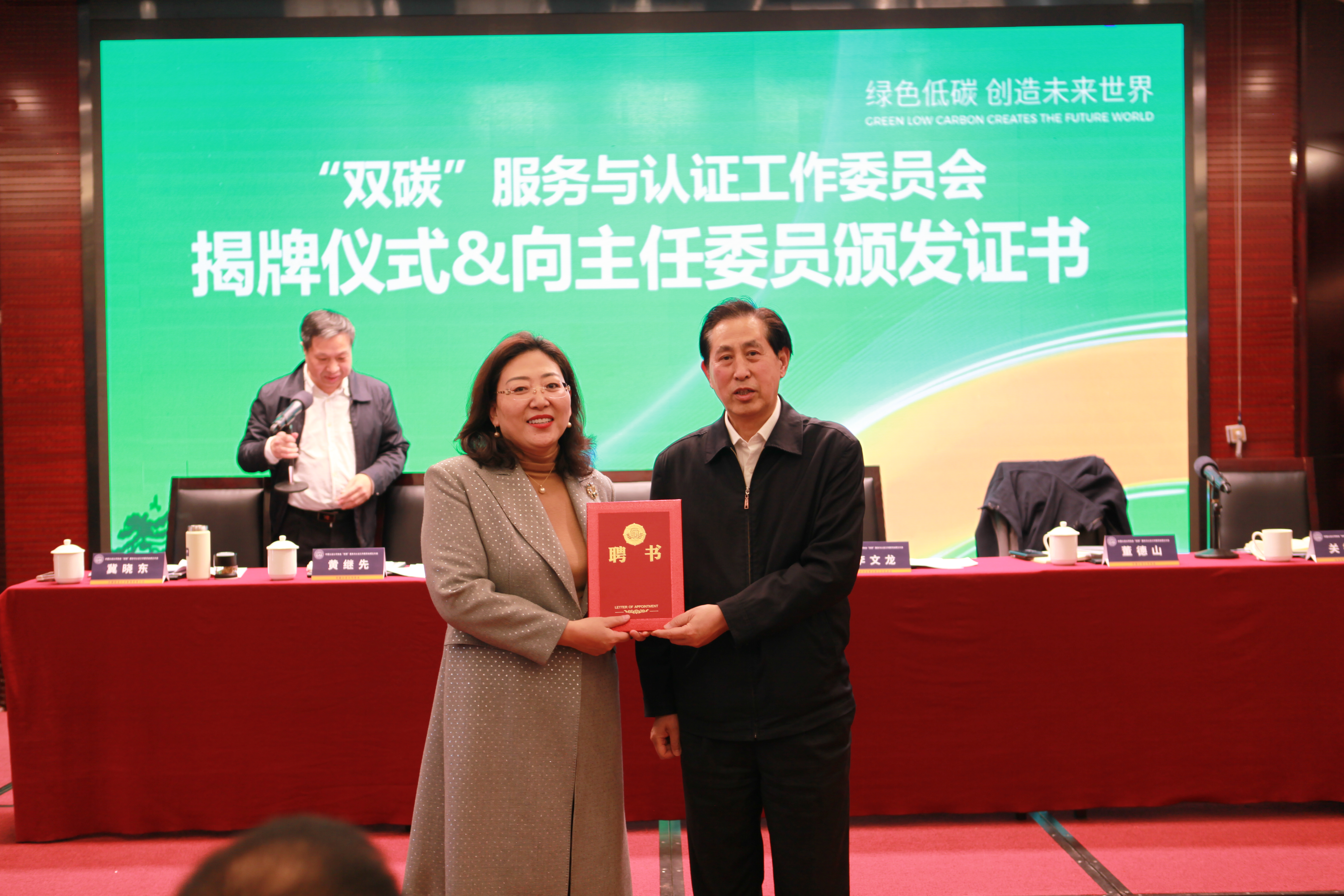 会上,中国认证认可协会常务副会长兼秘书长黄继先宣读了批准成立“双碳”服务与认证工作委员会并聘任冀晓东董事长担任主任委员的文件。朱光沛会长与冀晓东主任共同为“双碳”服务与认证工作委员会成立揭牌。