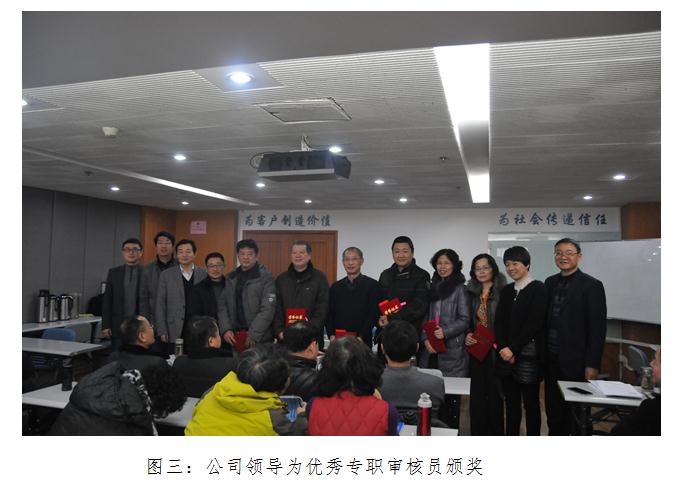 在下午召开的审核员表彰会议上,施晓彦总经理充分肯定了全体审核员一年来所取得的成绩,并对大家的辛勤付出和无私奉献致以诚挚的感谢。号召大家同心协力,再接再厉,全面完成2016年的各项工作任务。韩大华副总经理宣读了2015年度优秀审核员、优秀审定人员、荣誉员工及主题征文获奖情况等表彰决定文件,公司领导分别为获奖人员颁奖,勉励全体审核员见贤思齐,奋发工作,在岗位上再立新功。