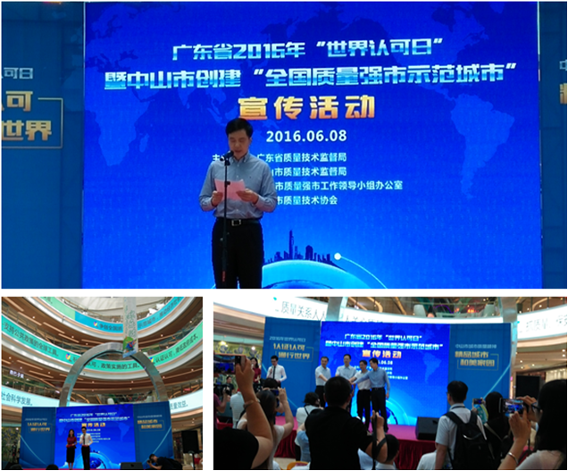 2016年6月9日是第九个“世界认可日”,今年的主题是“认证认可,通行世界”。6月8日,广东省质监局联合中山市质监局在中山举办广东省2016年“世界认可日”暨中山市创建“全国质量强市示范城市”宣传咨询活动。中山市政府副市长杨文龙,广东省质监局党组成员、副局长高国盛,中山市政府副秘书长陆德华,中山市质监局党组书记、局长冯海垣出席活动启动仪式。方圆广东公司荣幸受邀参加了此次活动。