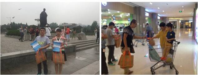在街道和超市发放宣传资料