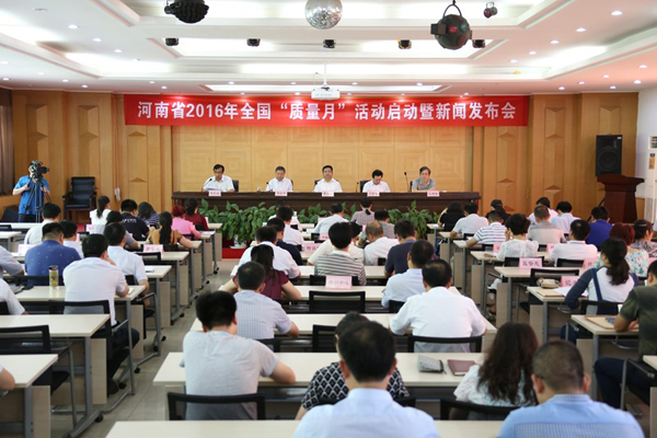 河南省质量技术监督局副局长贾国印出席发布会并做重要讲话、宣布“质量月”活动正式启动,副局长杨自明主持。省质监局质量处、监督处的负责同志分别宣读了河南省2016年全国“质量月”活动方案和2016年河南省主要产品质量监督抽查结果情况。省长质量奖获奖企业代表中铁装备公司副总经理方新强宣读了“提升供给质量,建设质量强国”承诺倡议书。中国质量报、河南日报、河南电视台、河南广播电台等省内外多家媒体应邀参加了发布会。