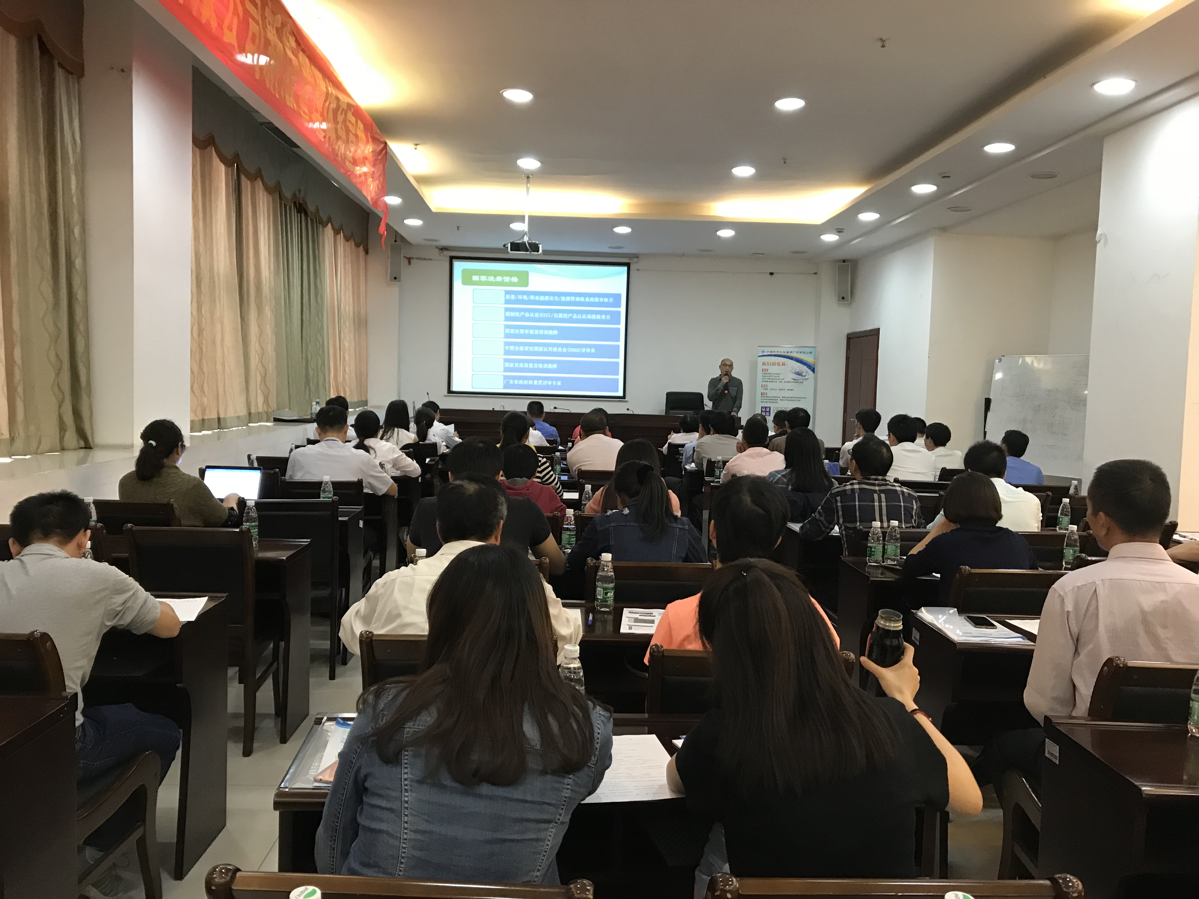 本次宣贯讲座,由方圆广东公司客户服务部梁捷部长主持,佛山市质量和标准化研究院的尹纯副院长发表讲话,方圆广东公司熊飞彪副总经理为与会代表讲解了新版标准的转版背景及要求,分析总结了两个体系的新版标准主要变化与应对的办法,力求参会者能通过本次会议对新版标准有一个更深的了解,对今后各企业开展ISO认证有所帮助。
