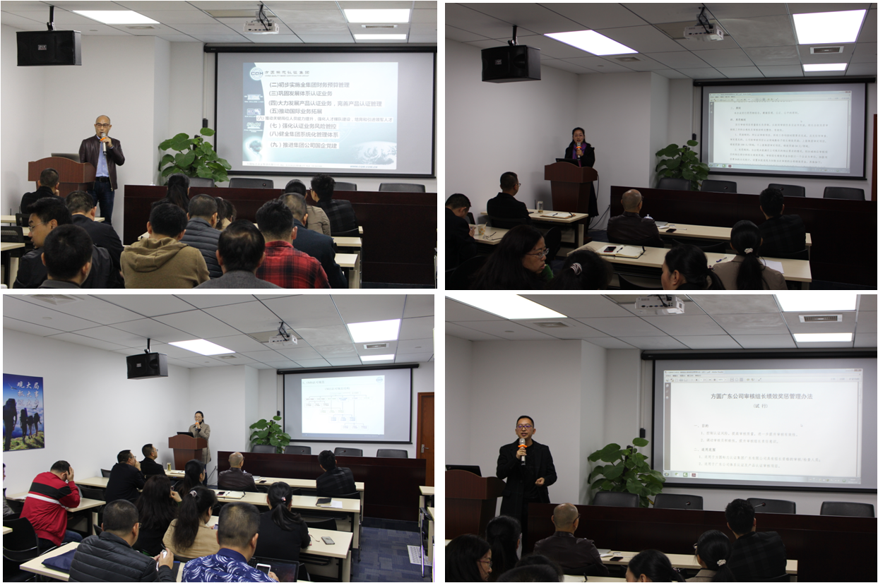 公司常务副总经理熊飞彪传达了集团工作会议(武汉)精神,组织全体员工共同学习了冀晓东总经理重要讲话和集团公司各部门重点工作安排,部署了广东公司2018年主要工作目标和重点任务。号召全体员工在新的一年里,重视认证质量、风险管控和业务发展,积极响应集团“新三大“等方针政策,继续努力,争取更大收获。