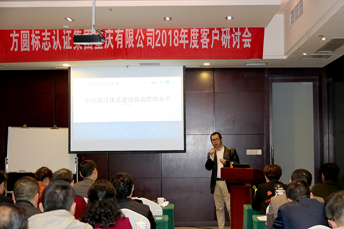 方圆重庆公司总经理黄嗣竣对长期以来支持和关心公司发展的获证组织表示感谢,表达公司将以公正、权威、贴心的服务,帮助客户提高产品质量和管理水平。并就企业全面质量管理的最新政策进行解读。会议还邀请到方圆福建公司事业发展部陈澍新部长围绕“如何通过体系建设提高质量管理水平”结合实际案例为大家深入浅出的进行了经验分享。