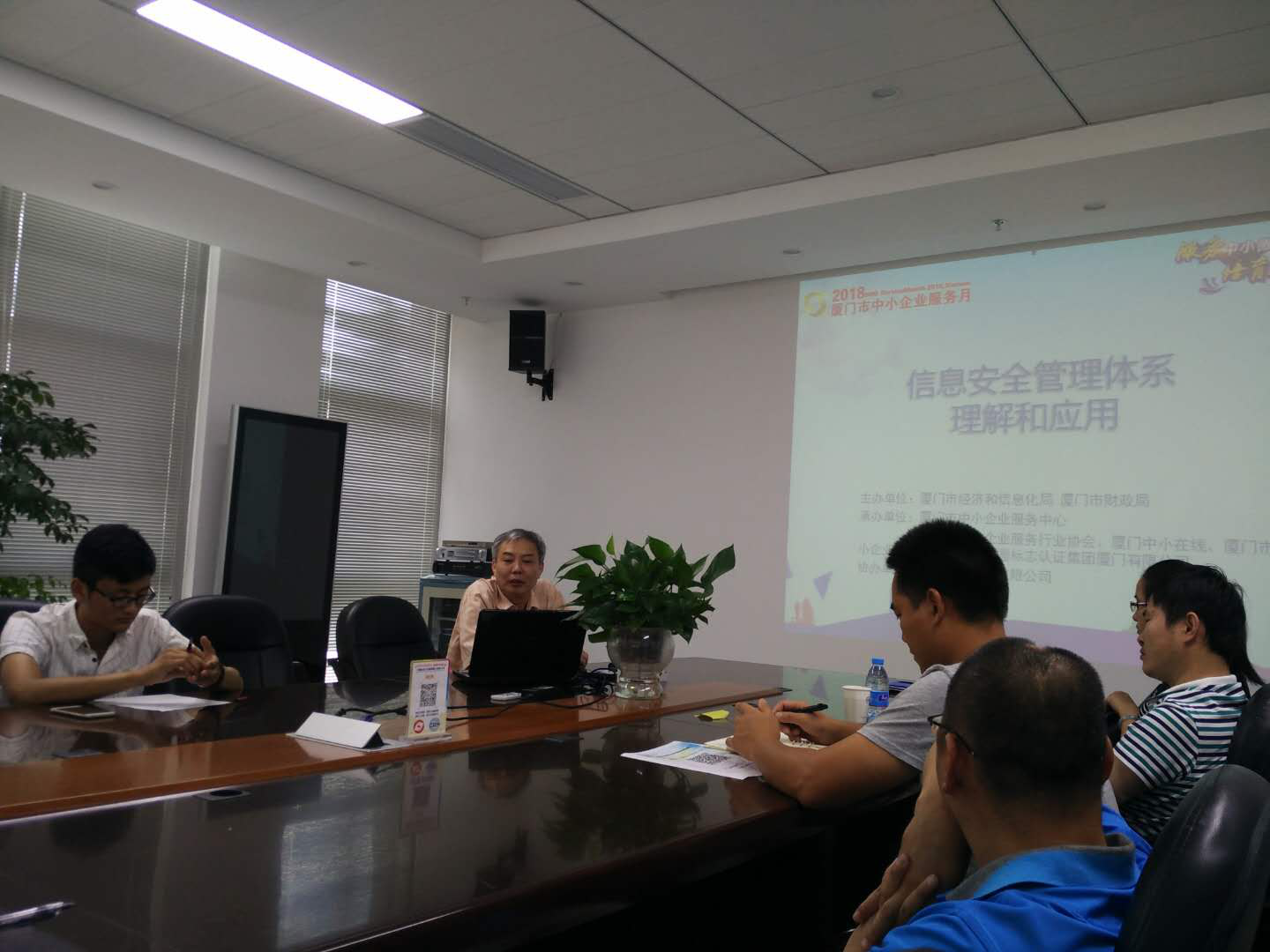时间:2017年07月26日 6月15日,由厦门市经济与信息化局、厦门市财政局主办,厦门市中小企业服务中心、厦门中小在线、厦门市中小企业服务行业协会、方圆厦门公司承办的“信息安全管理体系理解和应用”培训活动在集美区软件园三期厦门方圆培训教室顺利举办。本次培训为2018年厦门市中小企业服务月活动之一。