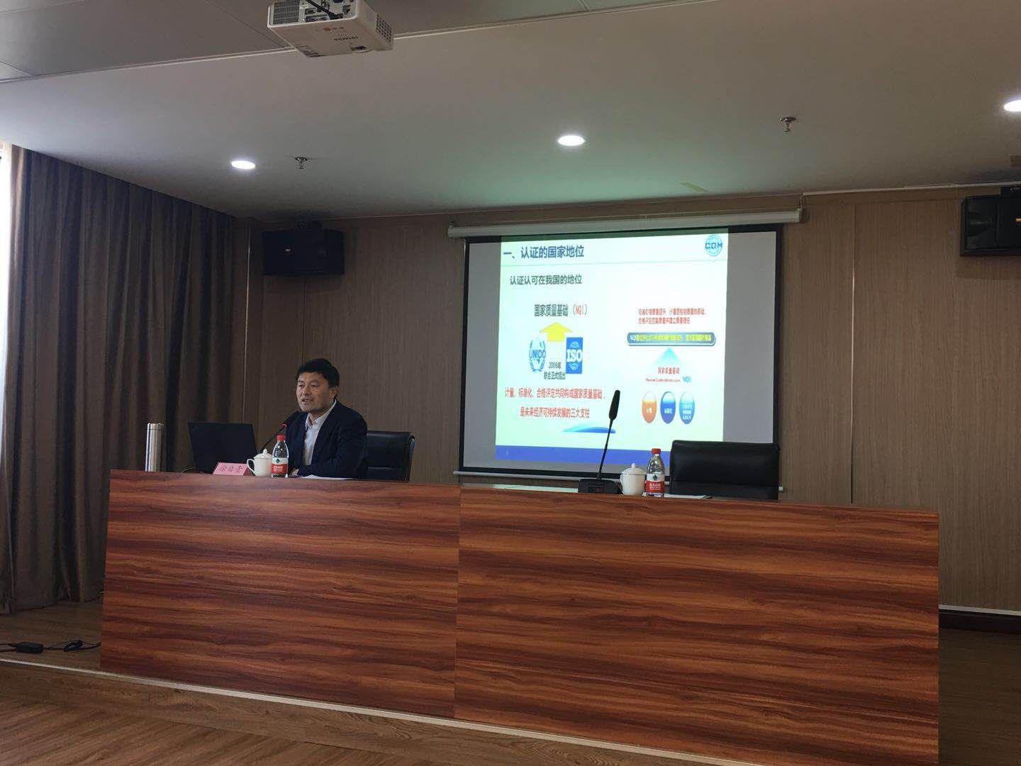 作为山东认证讲师团成员的徐自壹部长分别对认证的国家地位、认证简介、认可简介和认证在我国发展史等四个方面进行了讲解。
