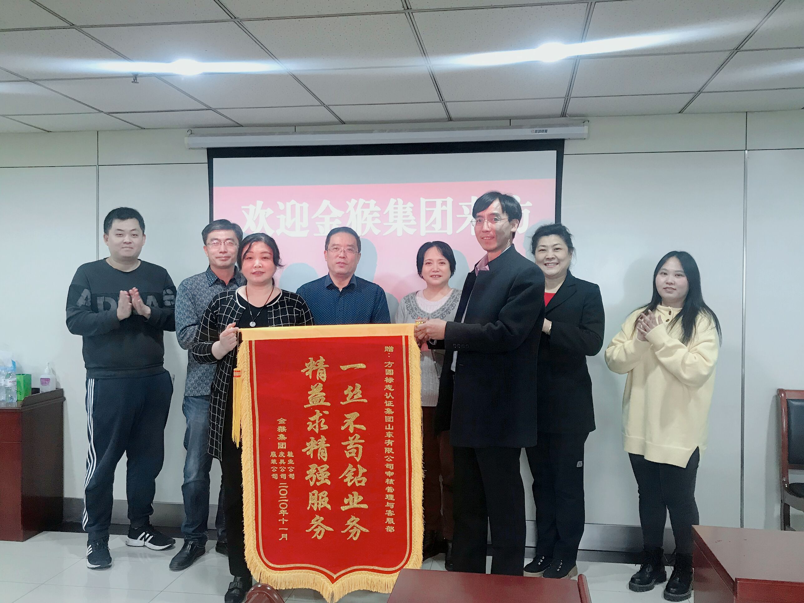 金猴集团向方圆山东公司审核管理与客服部赠送锦旗