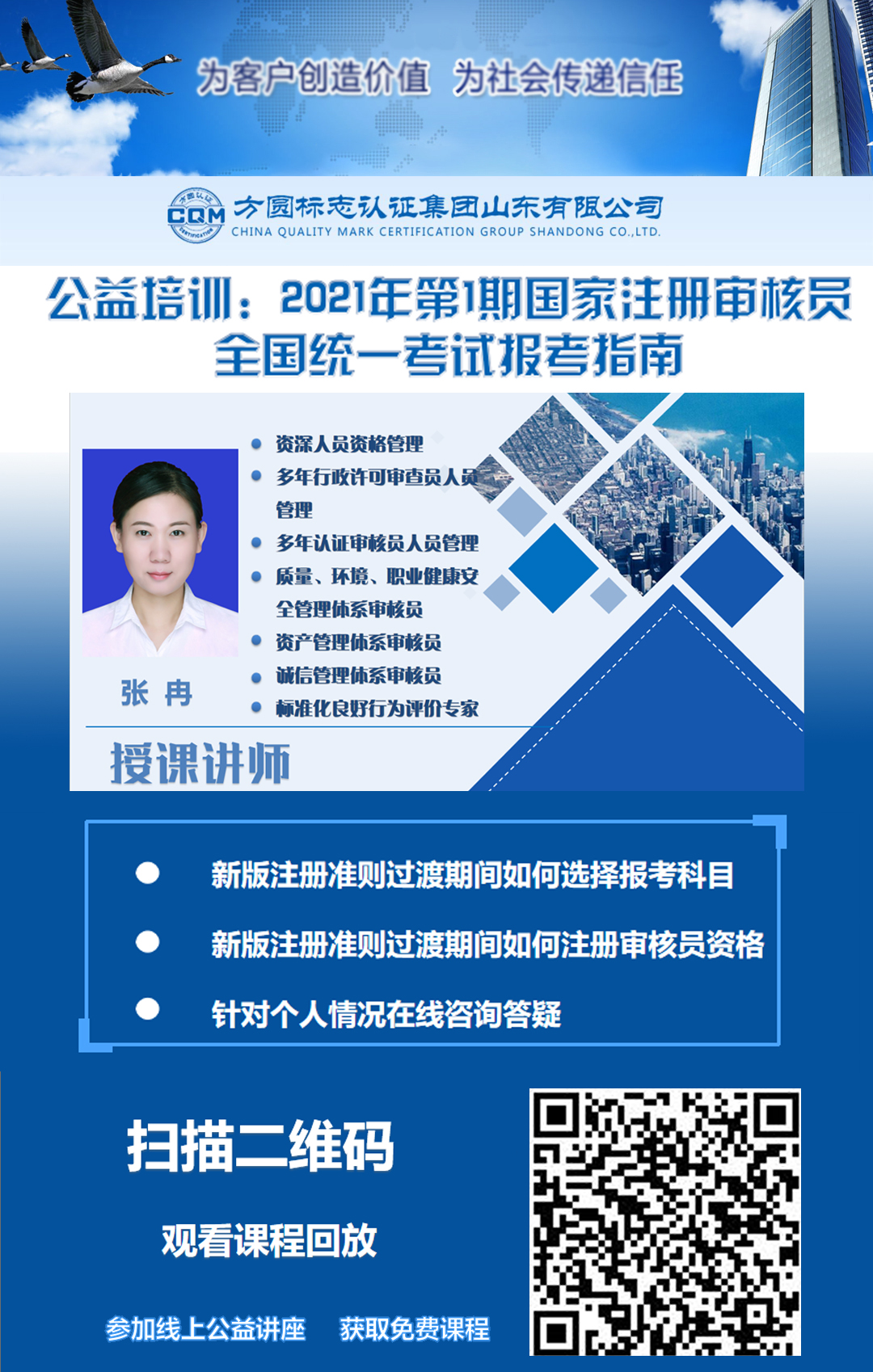 方圆山东公司成功举办2021年第1期国家注册审核员全国统一考试报考指南线上公益培训
