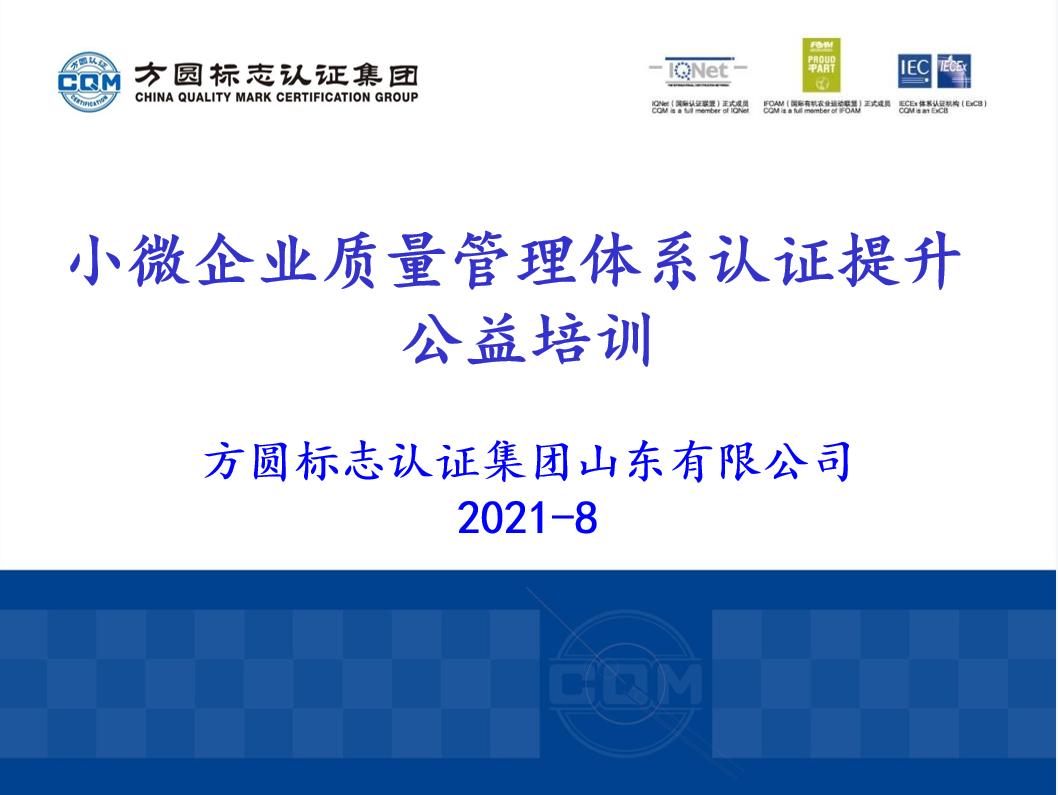 方圆山东公司还将于8月底9月初举办一期小微企业质量管理体系建设培训,培训内容为如何开展质量体系内审、管理评审培训,对质量体系运行中存在对问题进行讲解。