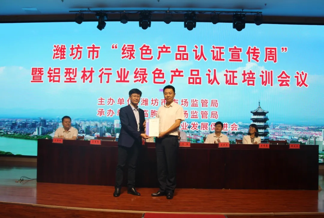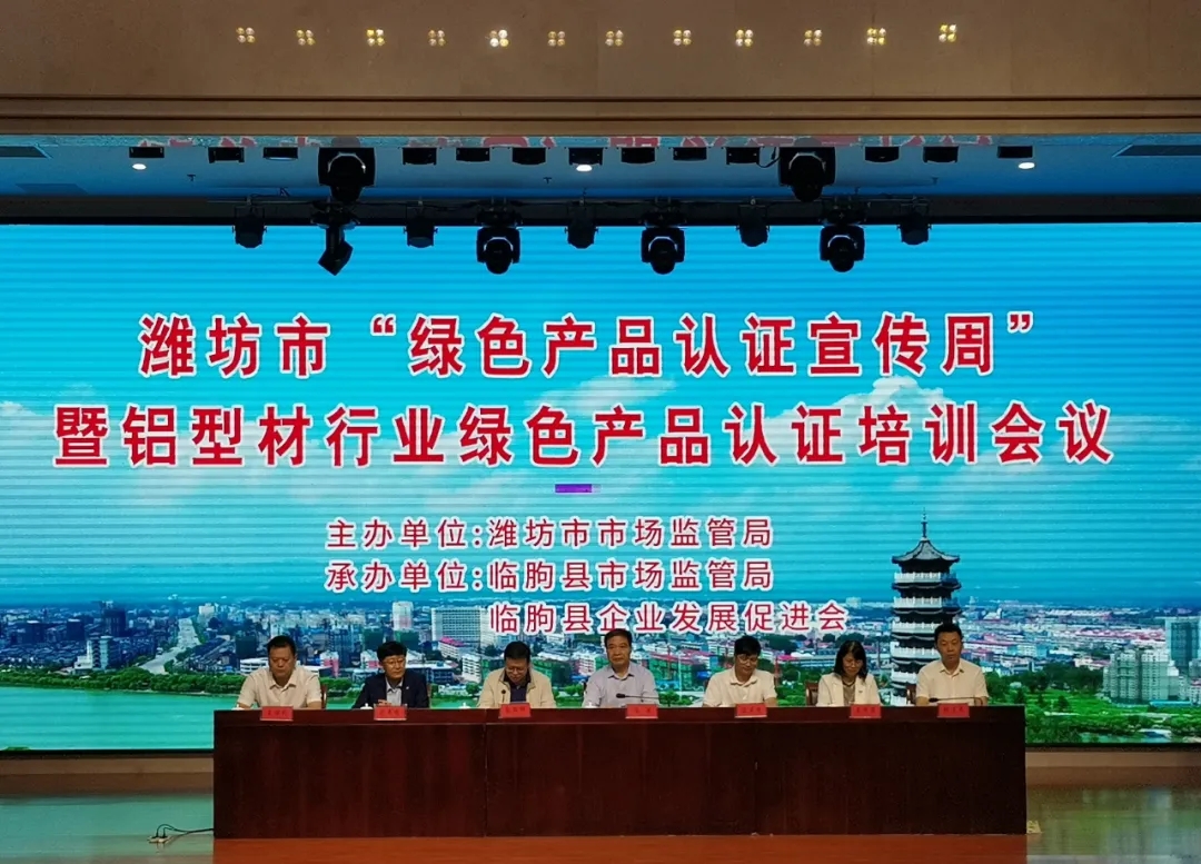 时间:2021年09月29日 9月28日,潍坊市“绿色产品认证宣传周”启动仪式暨铝型材行业绿色产品认证培训会议在中国铝都--临朐召开。山东省市场监管局认证认可处一级调研员冯浩,潍坊市市场监管局党组成员、副局长庞胜明,临朐县副县长温庆杰等领导出席会议。