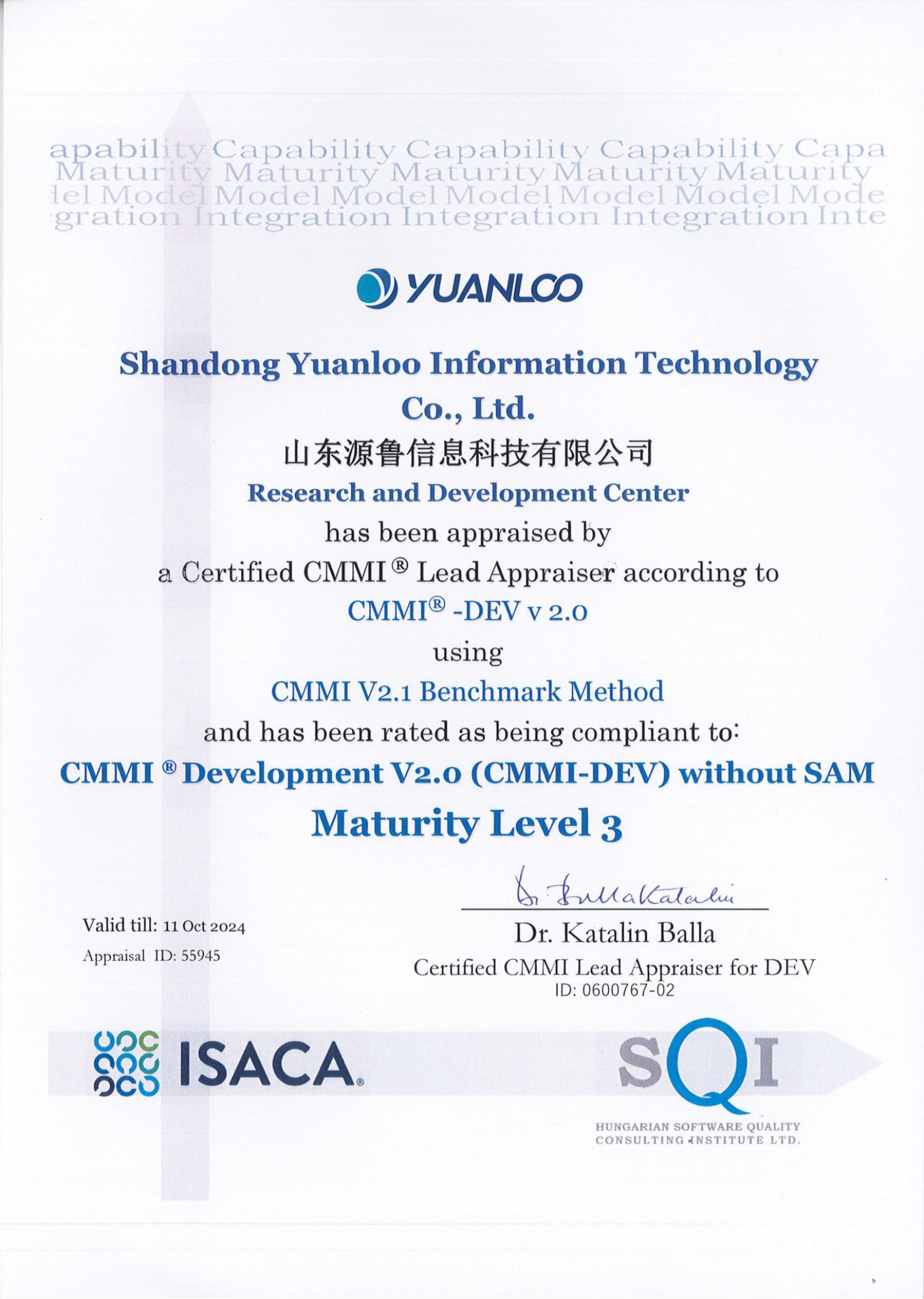 山东源鲁信息科技有限公司除了本次获得CMMI3证书以外,还在近年陆续通过了我司质量、环境、职业健康安全、信息技术服务等管理体系认证,各体系运行均保持较高水准。目前我司正为山东源鲁信息科技有限公司提供数据管理能力成熟度评估(DCMM)技术咨询服务,目前已通过专家现场评审。