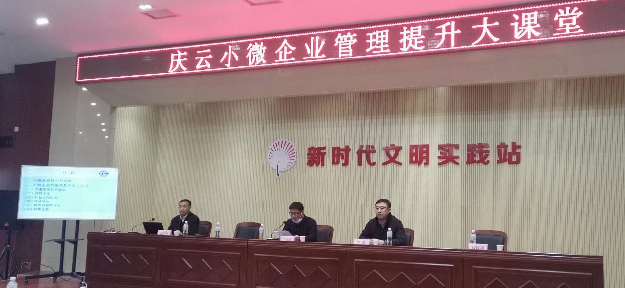 庆云县商务局党组成员王金亭副局长到会并讲话,庆元县40余家小微企业负责人参加了本次活动,方圆山东公司资深技术专家曲秀华对参会代表在小微企业如何提升质量管理方面做了详细的讲解。