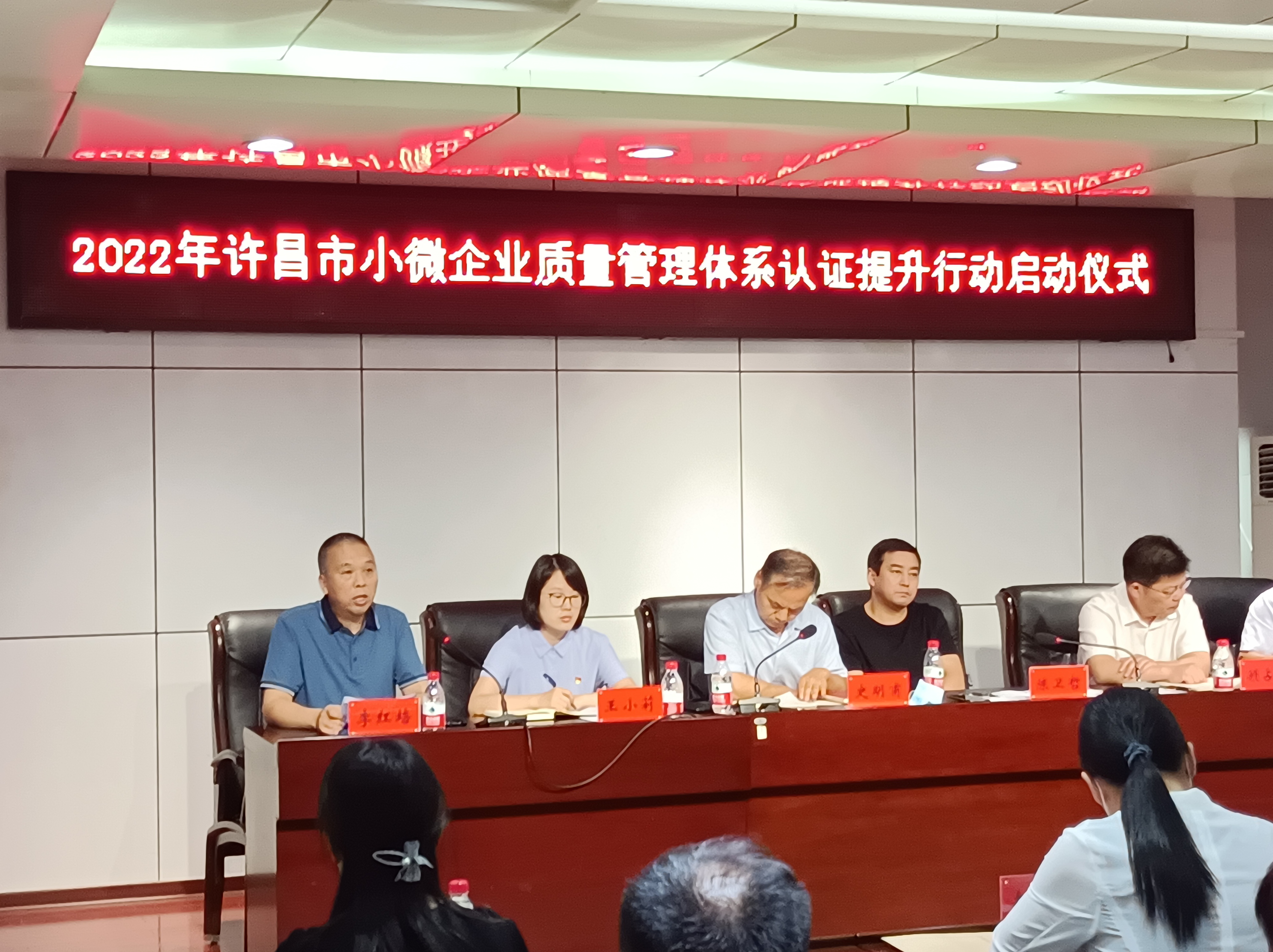 时间:2022年07月07日 7月1日下午,许昌市市场监督管理局启动全市小微企业质量管理提升工作,方圆标志认证集团河南有限公司承办。河南省市场监管局认证监管处史明甫处长、王小莉副处长,许昌市市场监管局陈卫哲副局长、禹州市市场监管局顾占勋局长、武少禹副局长、许昌市其他县(市)、区市场监管局主管领导、方圆标志认证集团河南有限公司总经理李红培,许昌市小微企业代表共计50余人参加了启动仪式。