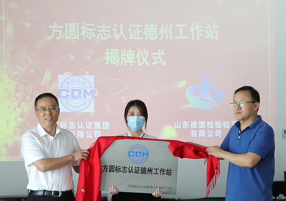 时间:2022年08月15日 2022年8月11日上午,“方圆标志认证德州工作站”揭牌仪式在德州中元科技创新创业园举行,德州市市场监督管理局认证认可科王松科长、方圆标志认证集团山东有限公司郑培堂总经理、山东德盟检验检测有限公司崔福洲总经理共同为“方圆标志认证德州工作站”揭牌。