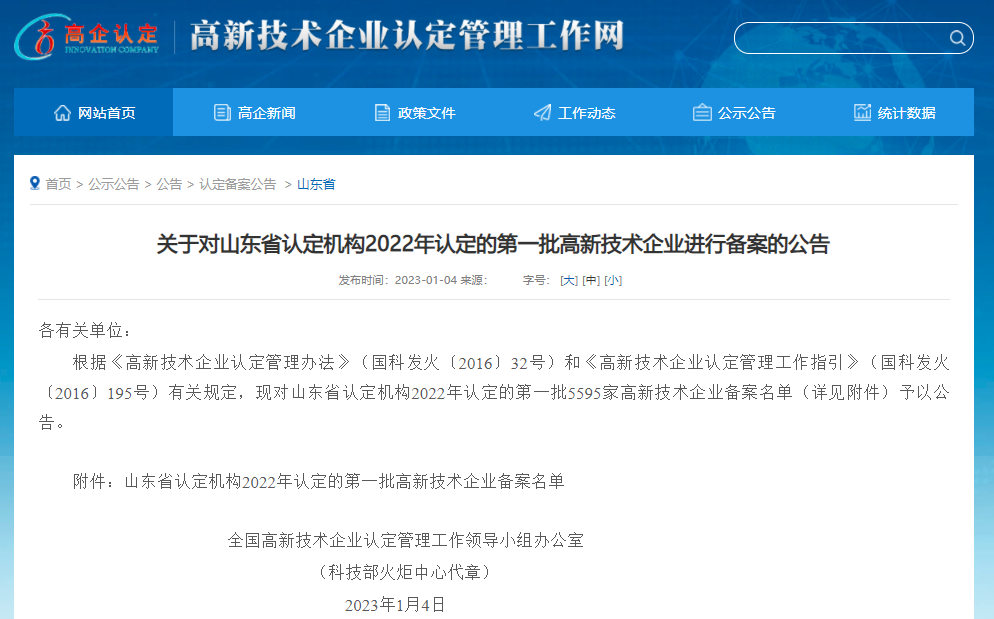 热烈祝贺方圆标志认证集团山东有限公司 通过国家高新技术企业认定