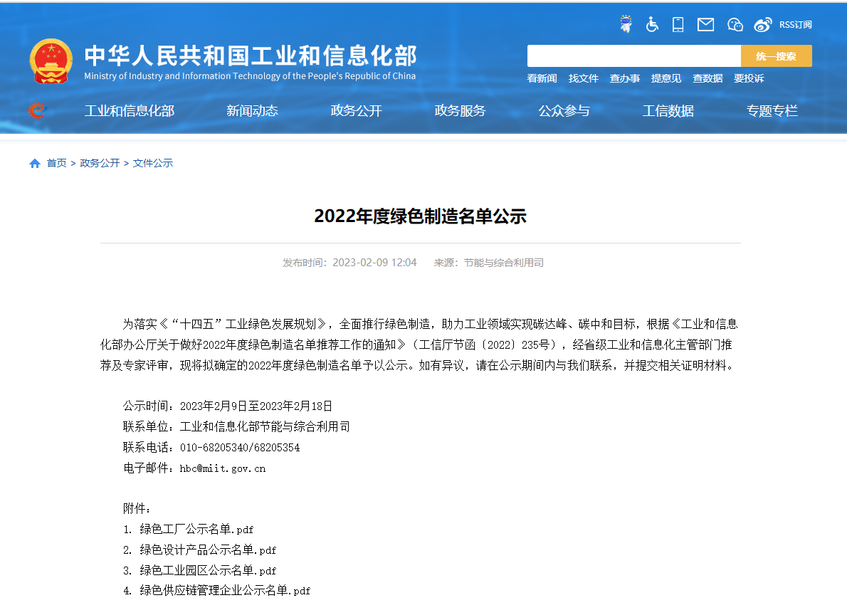 方圆山东公司客户入围2022年度国家级绿色工厂公示名单