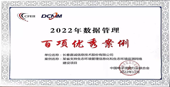 2月17日,中国电子信息行业联合会在北京举办了“首届中国数据治理年会”。方圆吉林公司服务的企业长春嘉诚信息技术股份有限公司(嘉诚信息)凭借《某省支持生态环境管理信息化和生态环境监测网络建设项目》成功入选2022年数据管理百项优秀案例榜单。