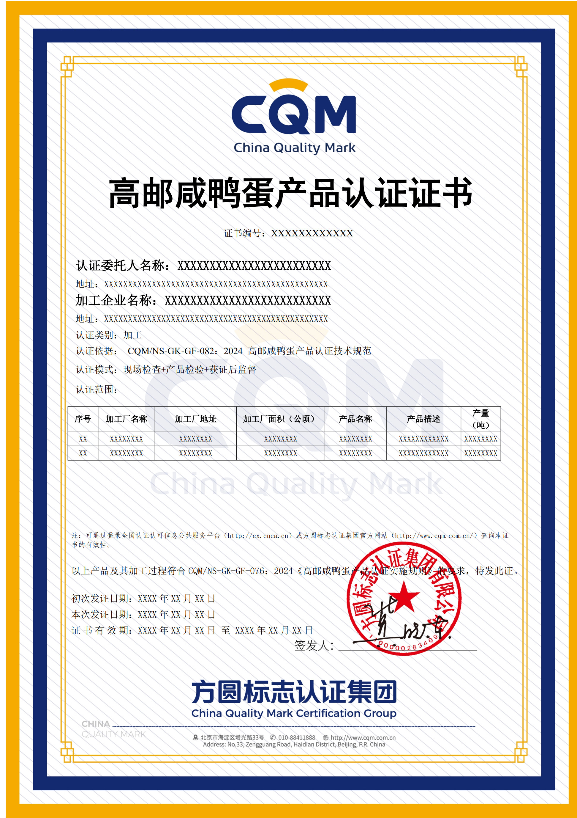 CQM/NS-GK-GZ-076:2024 高邮咸鸭蛋产品认证实施规则