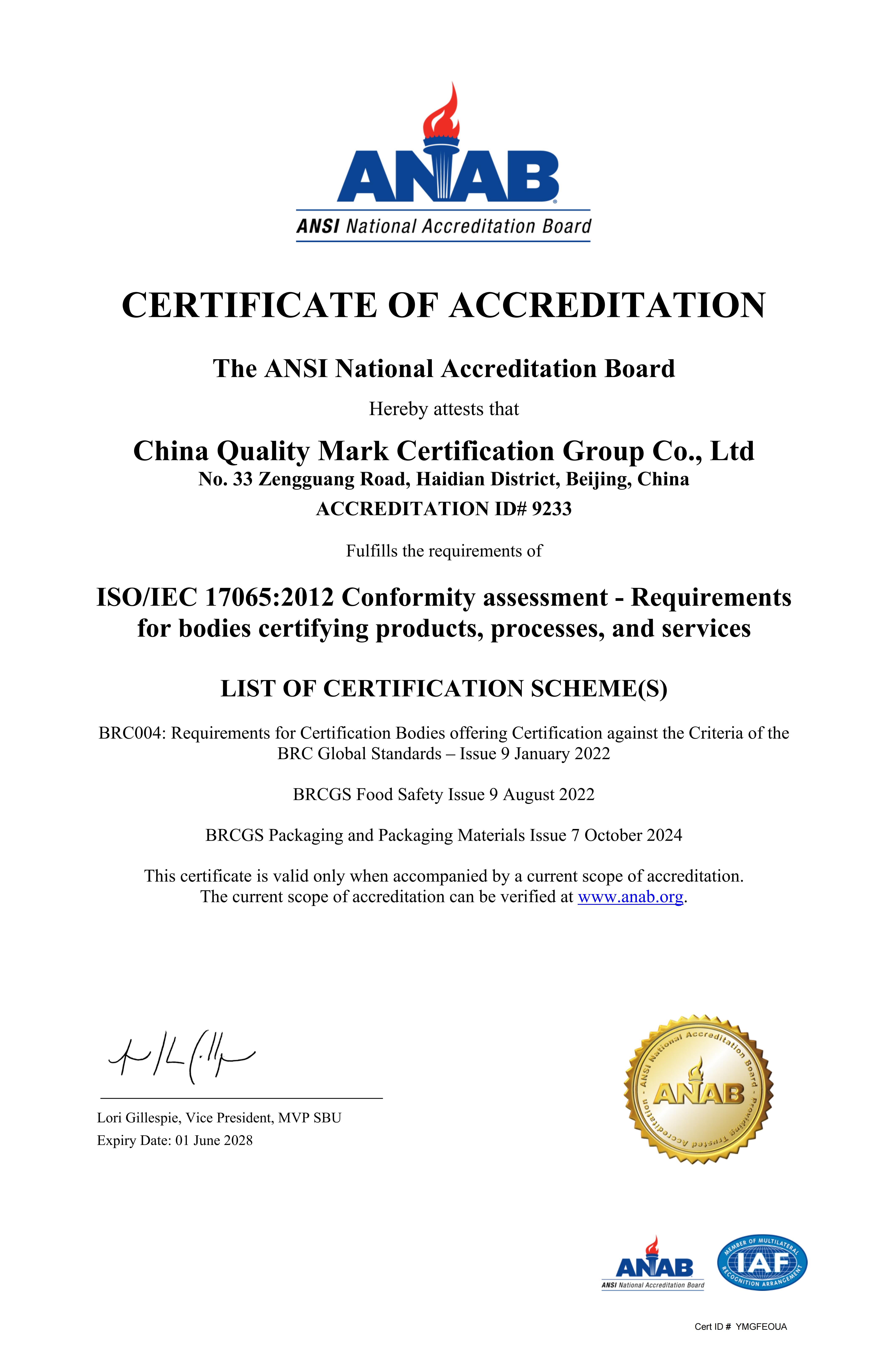 ANAB认可证书