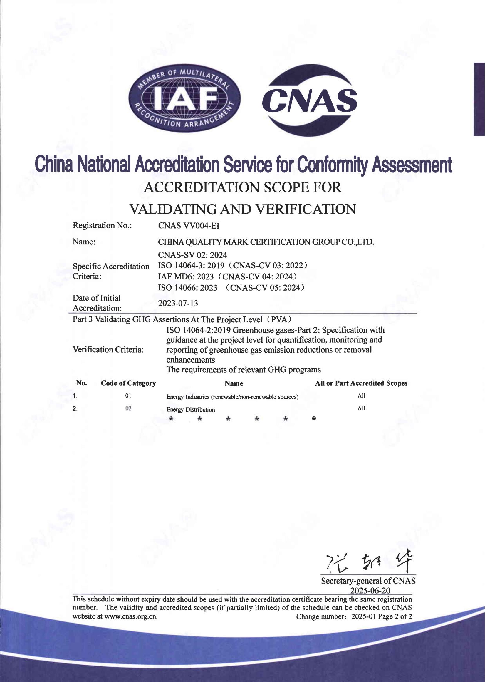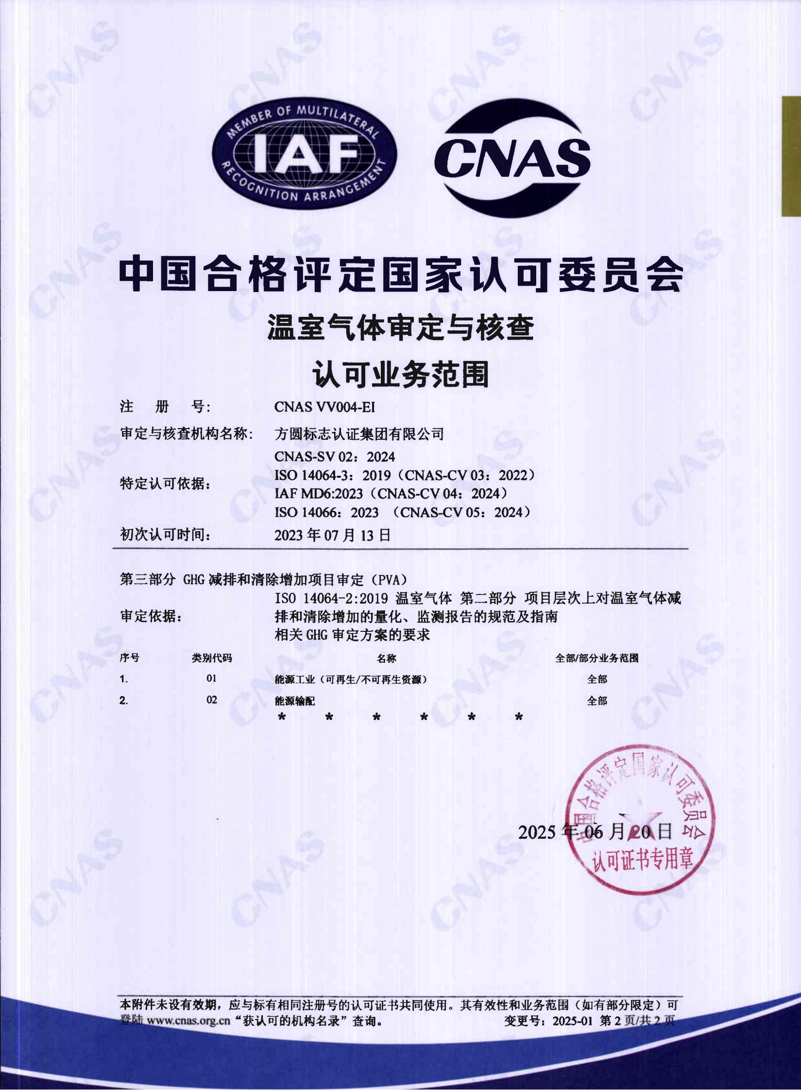 温室气体审定与核查认可证书