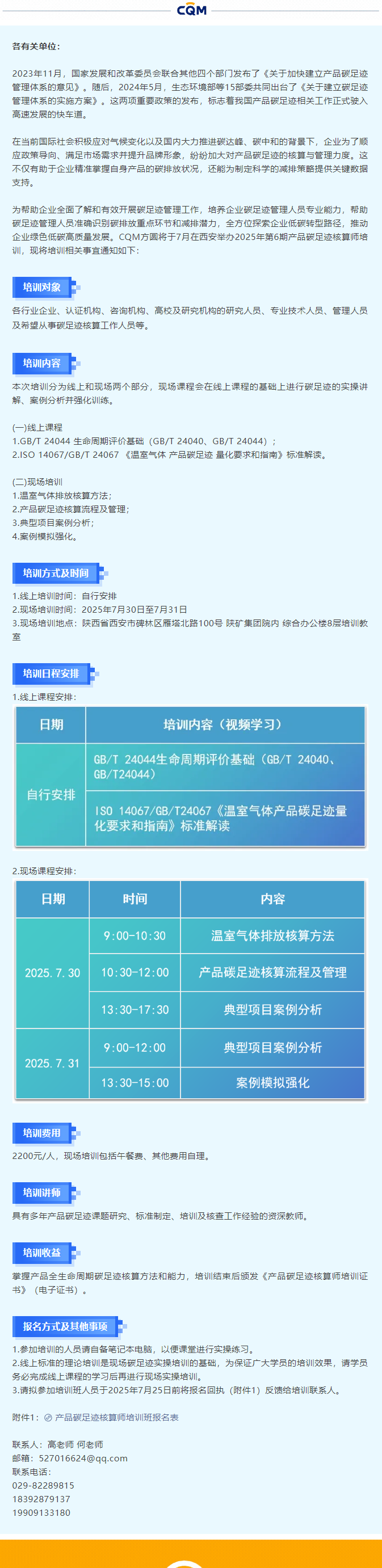 完美体育·(中国)官方网站-365WM SPORTS举办2025年第6期产品碳足迹核算师培训的通知