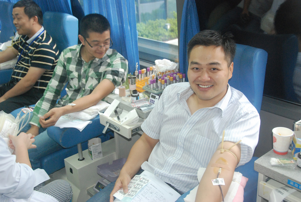 “8·2”昆山中荣特大事故造成了重大人员伤亡,医疗救助急需大量用血,而江苏省血液中心的库存已告急。接到江苏省质监局机关党委的通知后,方圆江苏分公司黄文君、王冉、葛培等6名党团青年员工自告奋勇,踊跃报名,赶赴江苏省质监局龙江大厦临时献血点义务献血。采血车里,鲜红的血液缓缓流进献血袋,志愿者们的脸上始终洋溢着自豪温暖的笑容,献血现场充满着互助互爱的浓浓真情。