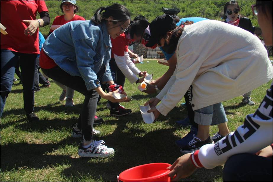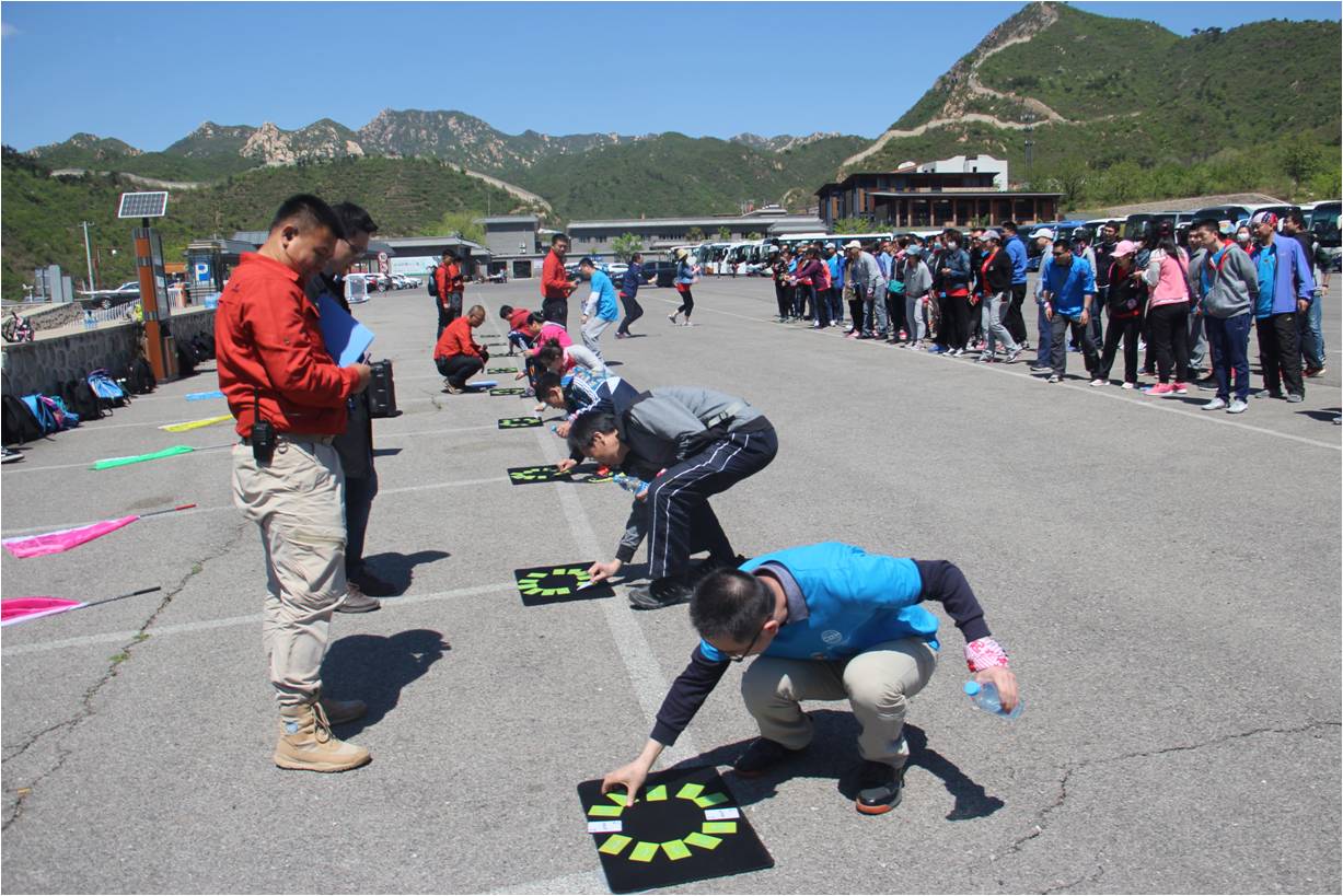 抵达黄花城水长城培训场所后,大家在培训教练的带领下被分成九个小组,经过各小组的一番头脑风暴,九个个性鲜明的团队名称、响亮的团队口号、嘹亮的队歌以及富有特色的队旗逐一精彩亮相,“小西湖场地趣味定向寻宝—湖底的秘密”拓展培训活动的序幕也正式拉开。各队手持“通关宝典”,比拼体力脑力,共同配合,拯救了“被诅咒的水怪”,攻克了“行走的板栗王”,挑战了“语言魔王”……活动过程中所有团队成员积极参与,迎难而上,队员之间相互支持,相互鼓励,最终,所有团队均圆满通关,完成了最终任务——方圆梦想拼图。