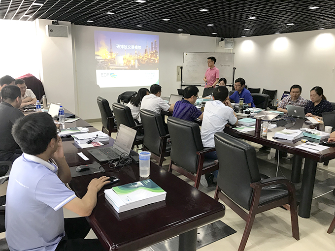 会议上,新兴业务部孙志辉副部长就中国碳市场的整体框架和背景进行了介绍,对碳排放核查业务的开展程序及主要内容进行了讲解;已经成功开展碳核查业务的广东公司、福建公司分享了近些年碳核查工作实施的经验;美国环保协会项目主管刘洪铭对气候变化的影响及碳市场建设发展情况在会上进行了详细地介绍,并组织参会成员现场进行了碳交易模拟培训,使参会人员亲身体验企业进行碳交易的全流程。