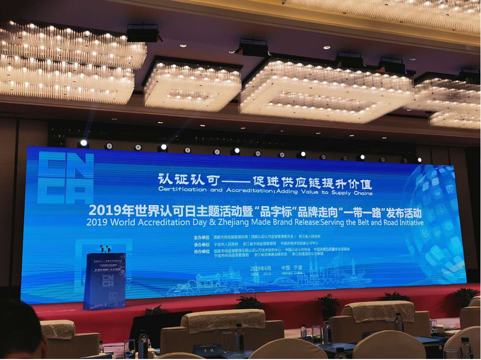 6月8日下午,由国家市场监督管理总局、国家认证认可监督管理委员会、浙江省人民政府主办,以“认证认可促进供应链提升价值”为主题的2019年世界认可日主题活动暨“品字标”品牌走向“一带一路”发布活动在浙江宁波举行。国家市场监管总局相关司局、浙江省人民政府和相关直属单位负责人以及各地新闻记者约400人参加活动大会。方圆浙江公司作为浙江制造国际认证联盟主要成员机构参加了此次发布会。
