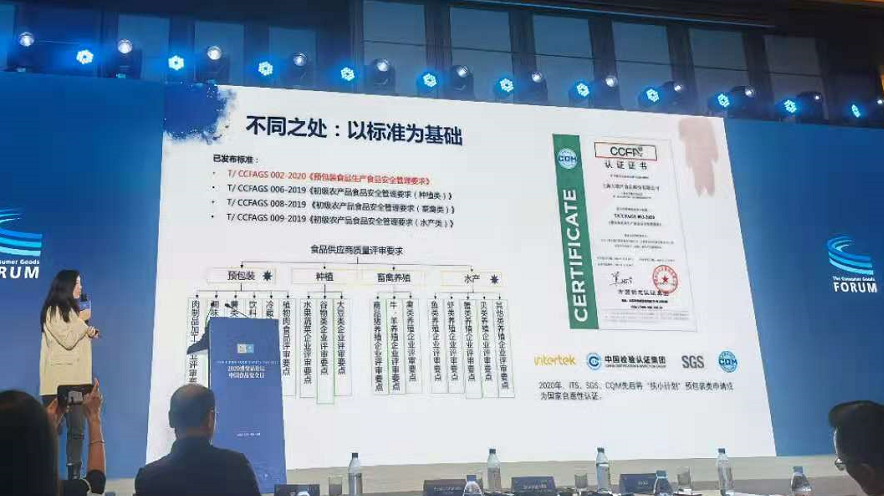 11月19日在上海“2020 中国全零售大会”上,参会领导为获得CCFA-GS认证的企业颁发了证书。