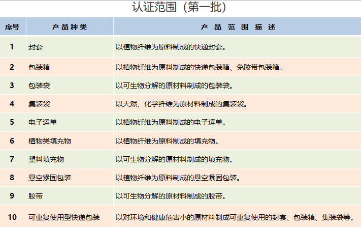 快递包装绿色产品认证是中国绿色产品认证的重要组成部分,它以《快递包装绿色产品认证技术要求》为依据,从资源、环境和品质属性等指标方面对快递包装产品开展评价。获得绿色产品认证的快递包装产品就意味着满足了资源节约、环境友好、消费友好等方面的特性要求。
