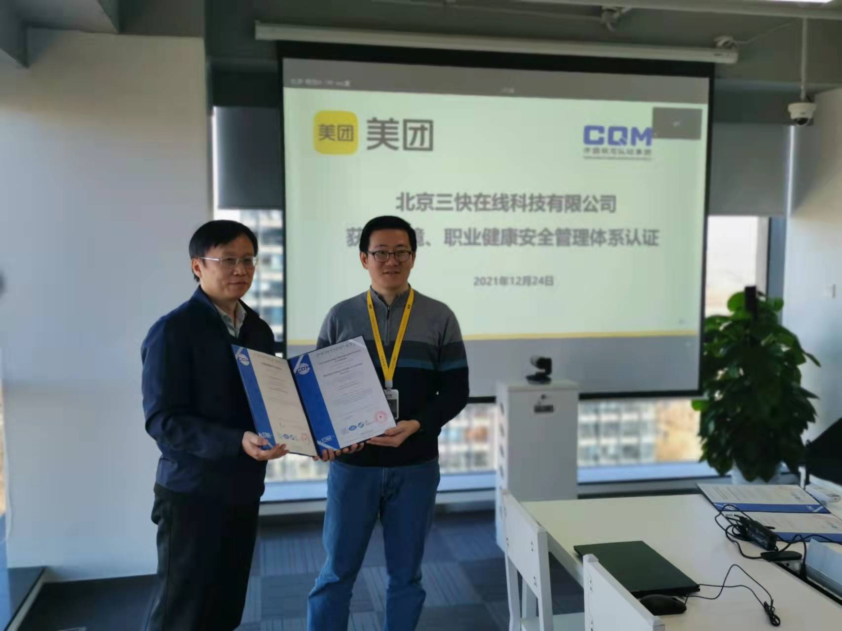 美团南京办公场所获得环境、职业健康安全管理体系认证