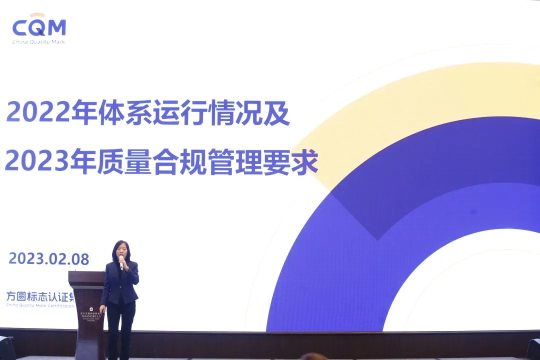 方圆集团副总裁兼管理者代表刘险锋作《2022年体系运行情况及2023年质量合规管理要求》工作报告。