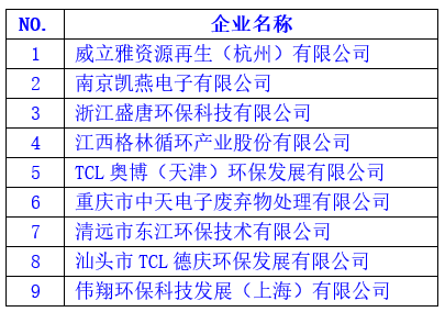 废电器电子产品回收处理GHG减排量核证试点企业名单如下(排序不分先后):