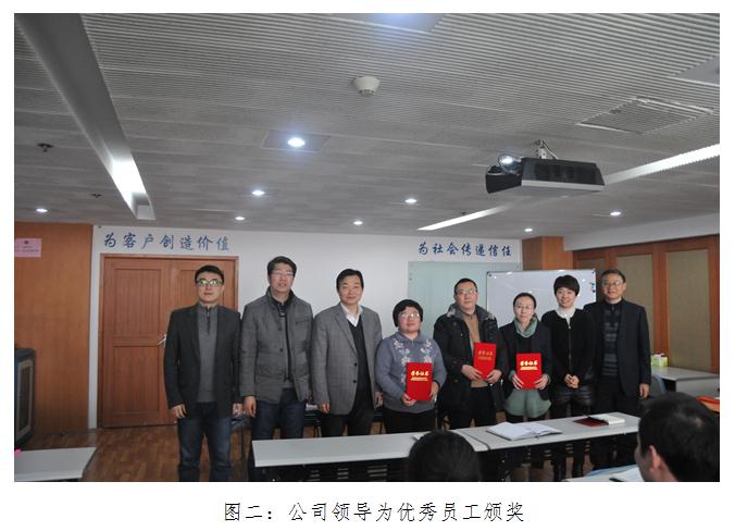 施晓彦总经理发表了热情洋溢的讲话,他代表公司领导班子向大家致以新春的慰问和诚挚的祝福,并从重视党群工作,加强内部管理,创新项目研发,强化市场开拓,优化审核方案管理,提升客服能力,加大培训开发等方面对2015年度公司经营运作情况进行全面总结;基于国家整体经济形势严峻、同业竞争加剧及监管力度加强等组织环境因素,分析机构的竞争优势与劣势、机会和威胁,进一步明确了公司“十三·五”战略发展方向,系统部署2016年度重点工作。