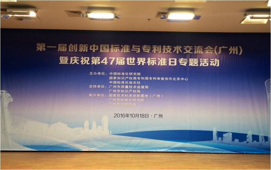 10月18日,由中国标准化研究院联合国家知识产权局专利局专利审查协作北京中心及中国标准化杂志社主办,国家技术标准创新基地(广州)、广州市标准化研究院、广州市发明协会承办的“第一届创新中国标准与专利技术交流会暨庆祝第47届世界标准日专题活动”在广州隆重召开,方圆广东公司陈明东副总经理代表公司受邀出席了本次会议。