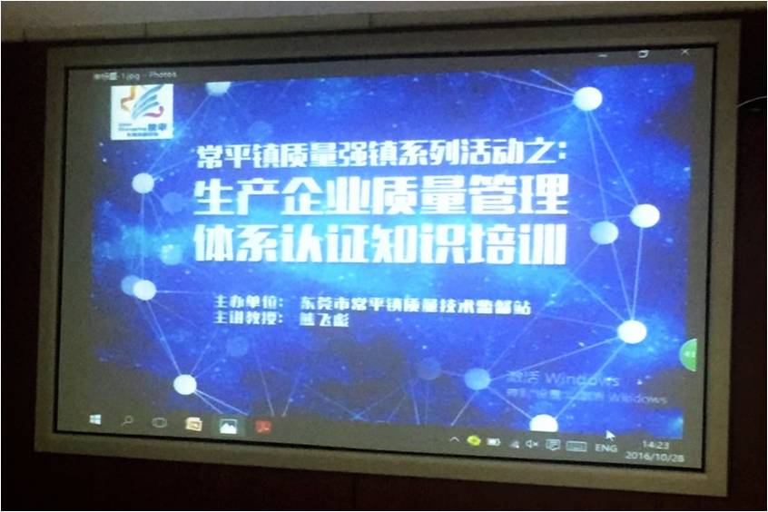近日,东莞市常平镇质监站主办了常平镇质量强镇系列活动,方圆广东公司作为常平镇特邀技术单位,于10月28日为常平镇80多个生产型企业进行了“体系认证知识培训”。