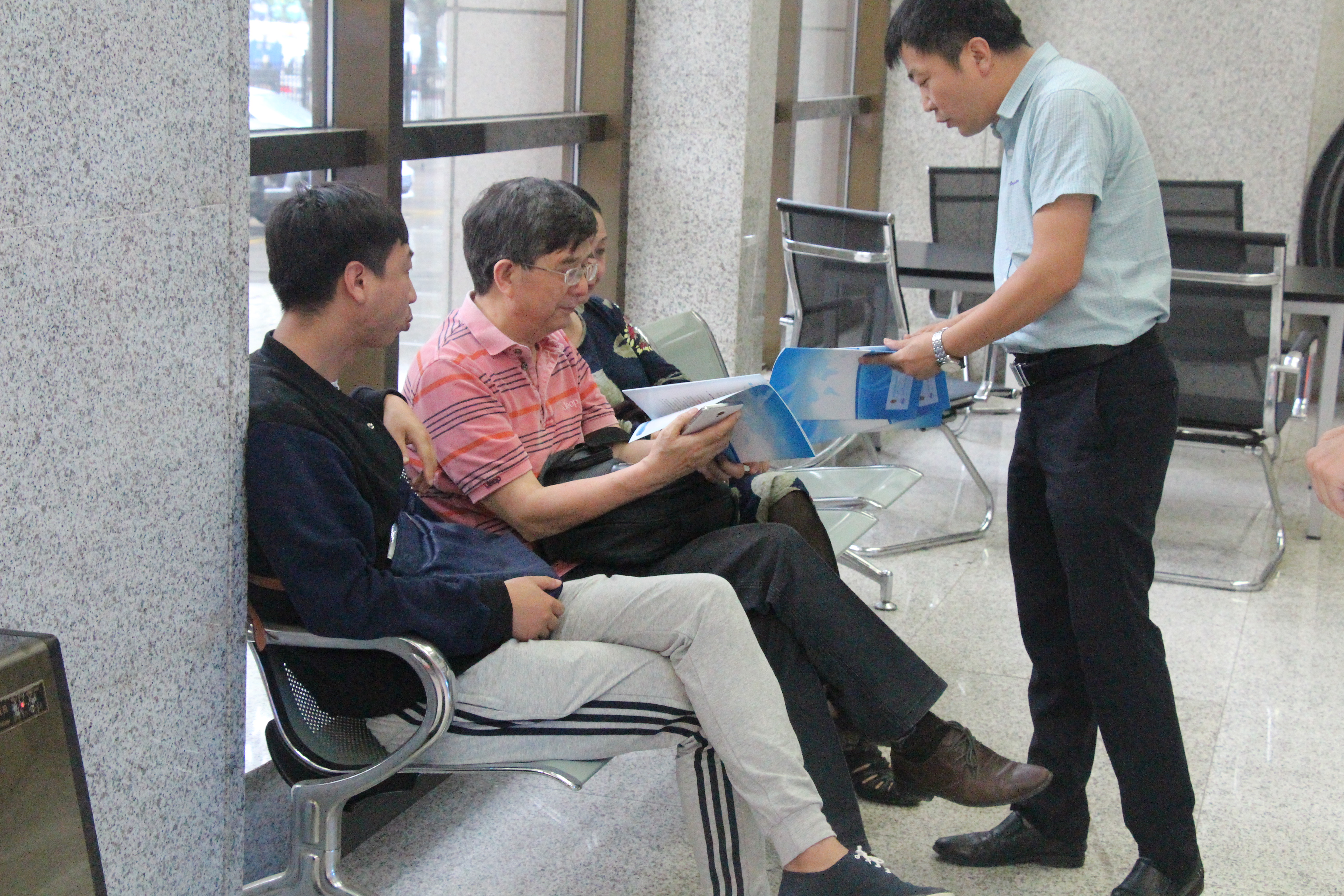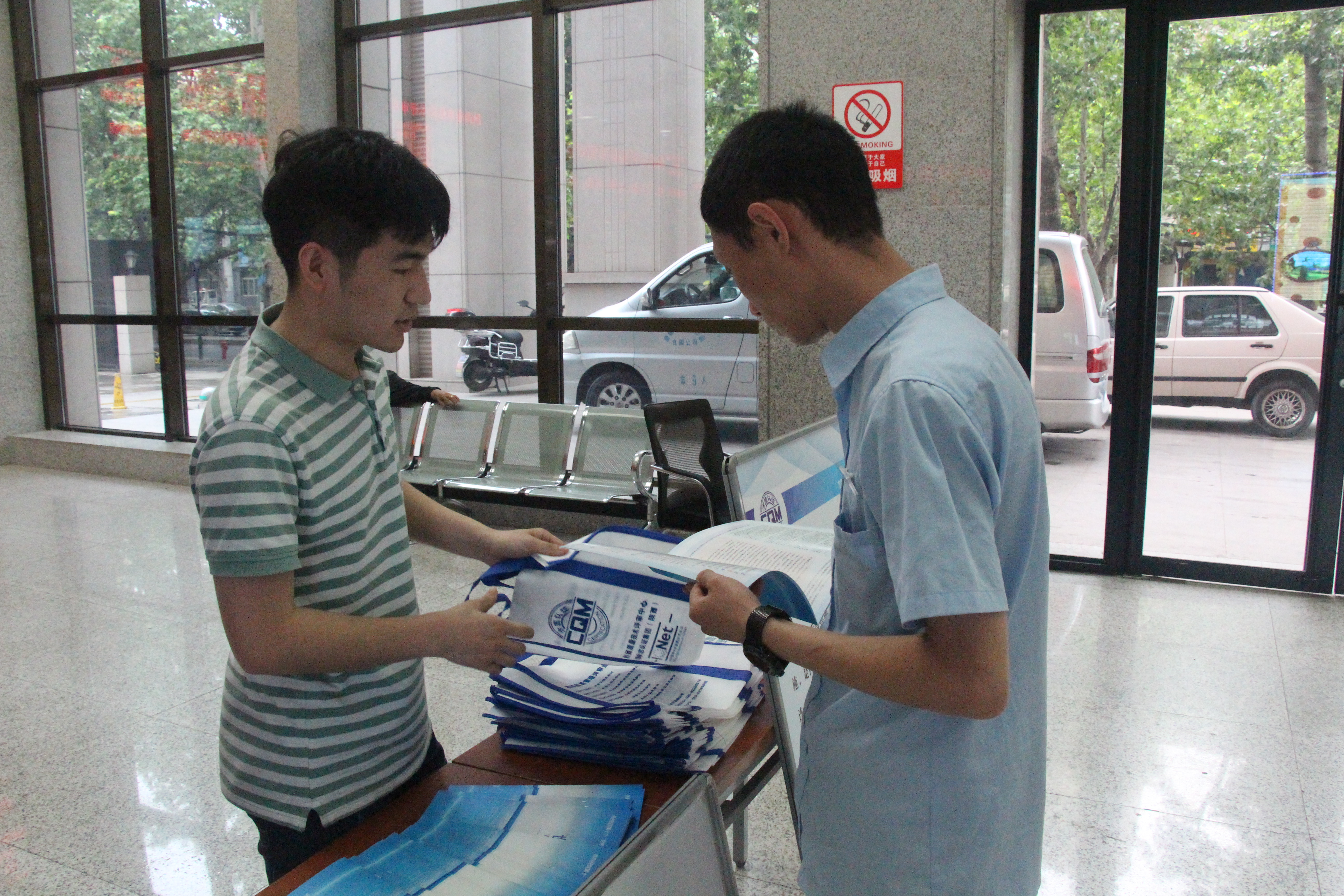 宣传人员在省质检大厦办事大厅设立咨询展台,向消费者及企业发放认可日宣传材料,宣传认证认可相关知识,并一一解答群众提出的相关问题。