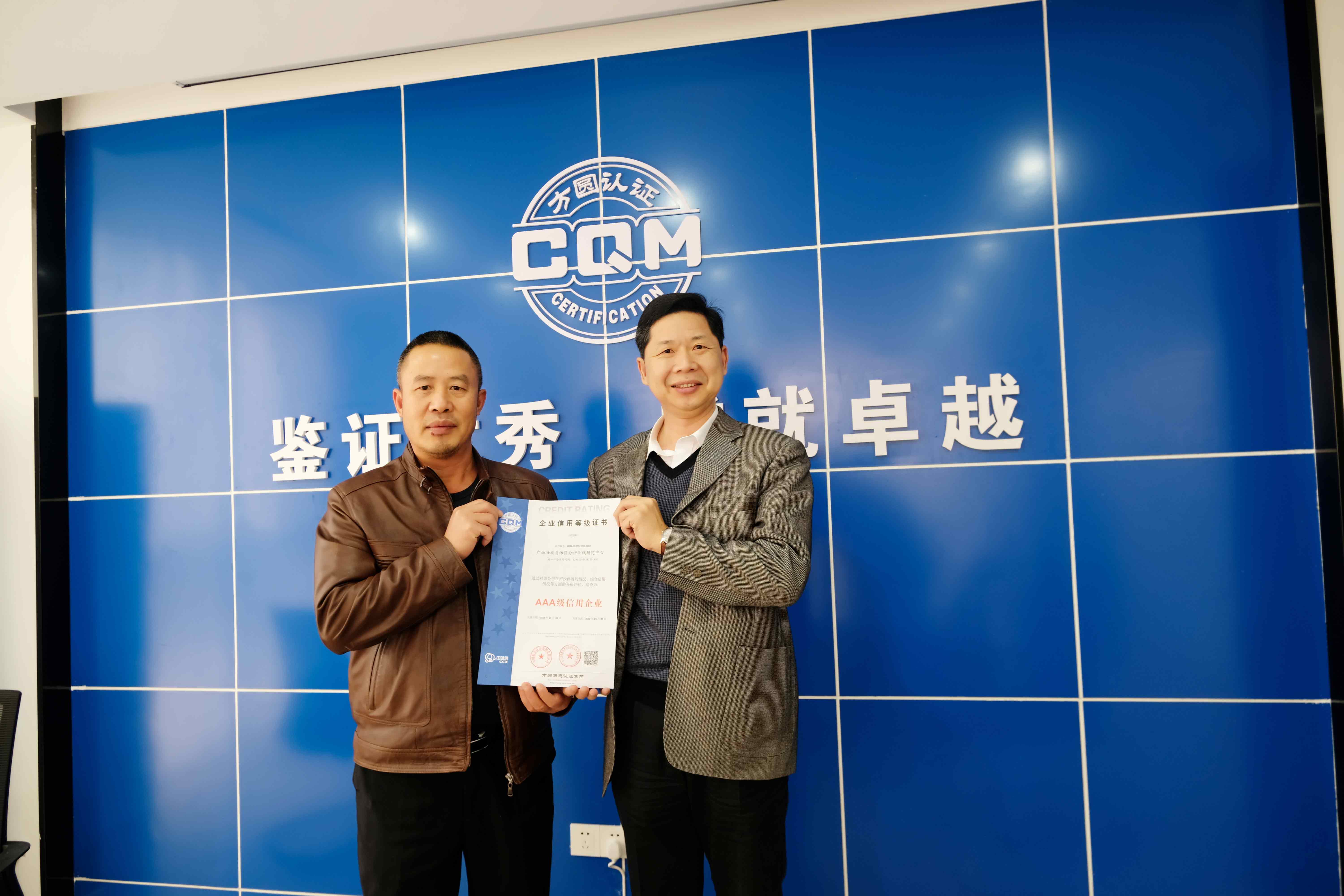 1月中旬,广西壮族自治区分析测试研究中心得知方圆集团开展招投标领域信用评级业务后,要求方圆广西公司立即为中心开展信用评级服务,并希望在2月初参与的一项政府项目投标截止日期前获得证书和报告。由于该中心此前不了解信用评级业务的工作流程和所提供评级材料的标准要求,认为信用评级机构只要提交财务审计报告和一些单位的基本信息就很快拿到相应的评级证书。经方圆广西公司业务人员耐心讲解,该中心了解了方圆的价值理念、服务理念、处事原则;同时,为了尽量满足客户取证需要,保障客户提交材料的真实性、完整性,高质量完成材料编写和整理工作,方圆广西公司业务人员主动提出与该中心工作人员共同按照信用评级标准要求编写整理评级所需材料。在总部市场部的大力支持、指导下,信用评级材料顺利通过预评审和正式评审。1月31日,该中心相关负责人亲自来到方圆广西公司领取方圆集团与中诚信联合在广西地区发布的首张招投标领域 3A级信用企业证书和信用报告,超出了该中心获证预期。