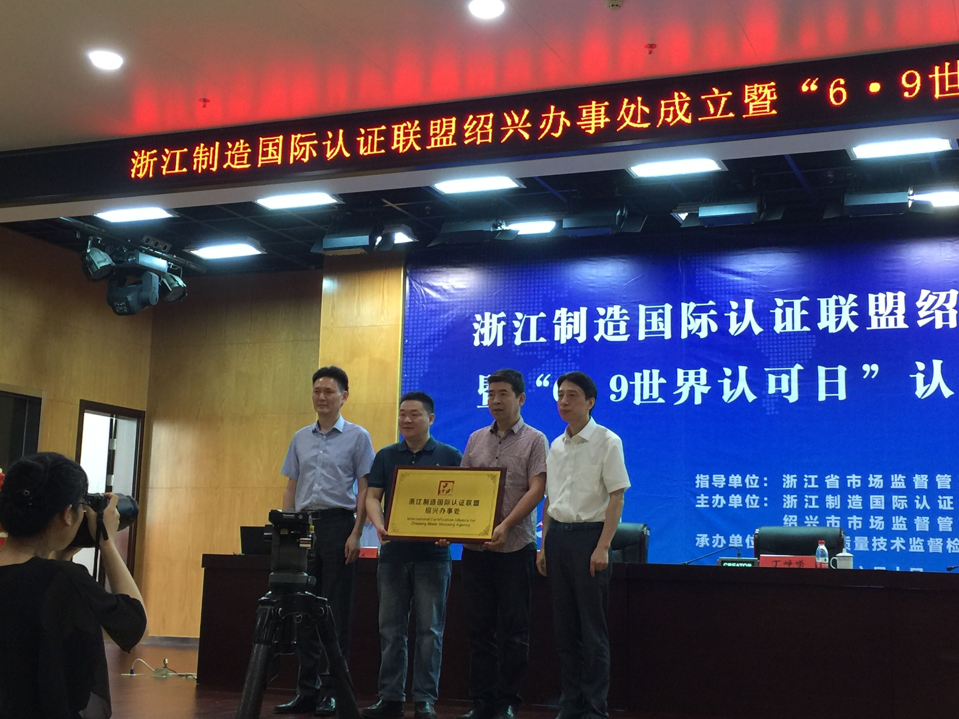 会上,省市场监管局合格评定处领导、浙江制造国际认证联盟主席,一同为绍兴市市场监管局科技评管处负责人和绍兴办事处负责人授牌,并分别做了讲话,对今后的工作提出思路和期望。