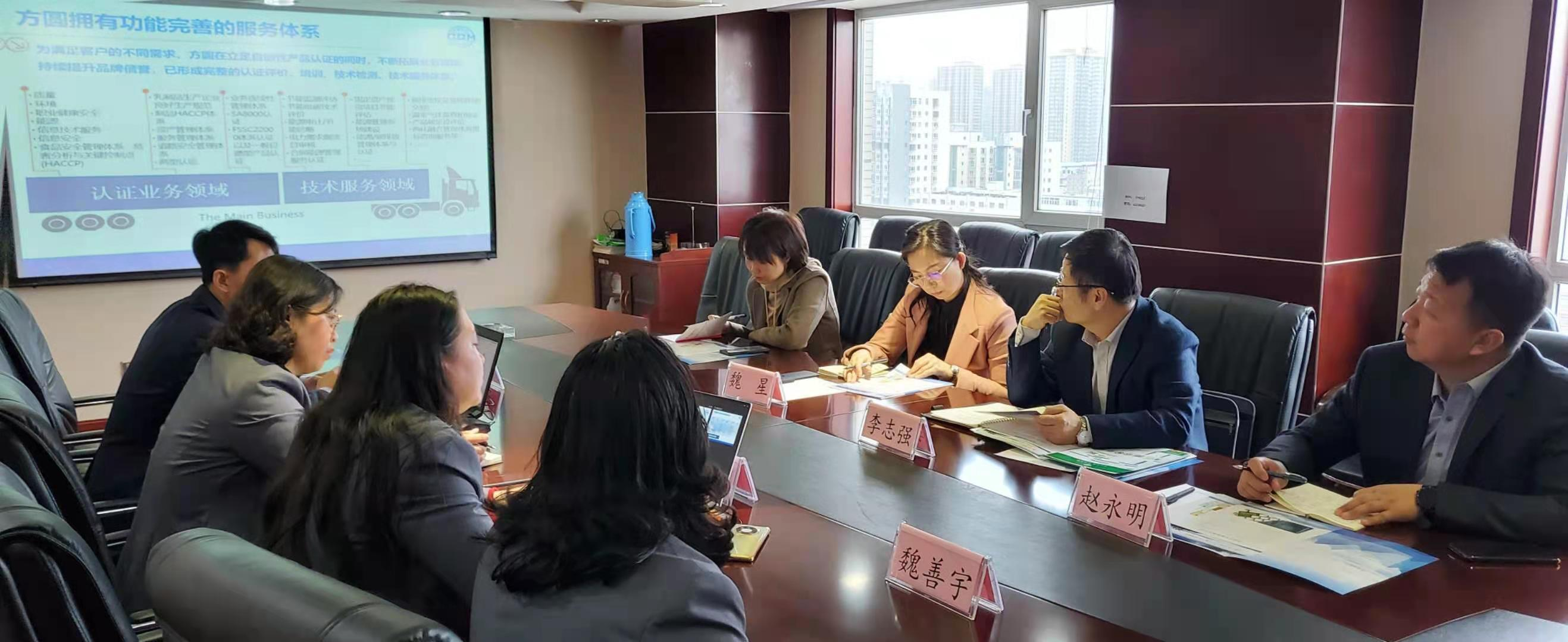 公司总经理裴虹首先对方圆标志认证集团山西有限公司机构运作、认证人员管理以及业务开展情况等进行了介绍。然后按照调研主题,就方圆集团区域品牌优势及忻州市杂粮产业团体标准双编号“标准+认证”工作的策划方案认证工作流程做了详细汇报。